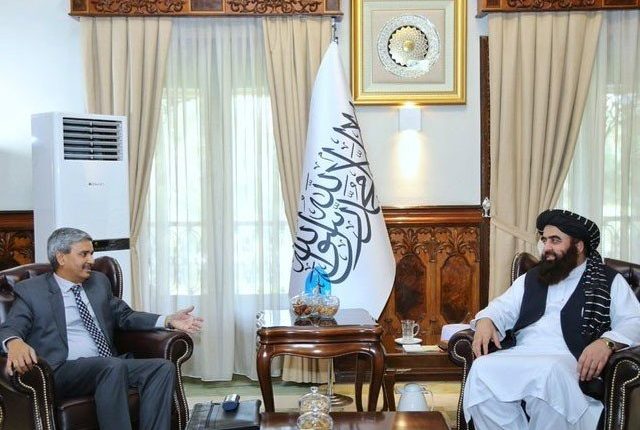 افغانستان کے قائم مقام  وزیرخارجہ عامرخان متقی سے بھارتی وزارت خارجہ  کے جوائنٹ سیکریٹری جے پی سنگھ نے وفد کے ہمراہ ملاقات کی اوردونوں ممالک کے درمیان سفارتی تعلقات کی بحالی،افغانستان کو انسانی ہمدردی کی بنیاد پر امداد کی فراہمی ،تجارت کے فروغ اوردیگرامور پربات کی۔
