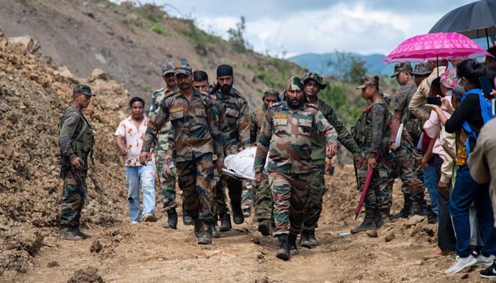 بھارتی ریاست منی پور میں لینڈ سلائیڈنگ میں ہلاکتوں کی تعداد 34 ہوگئی، ہلاک ہونے والوں میں 23 بھارتی فوجی بھی شامل ہیں۔