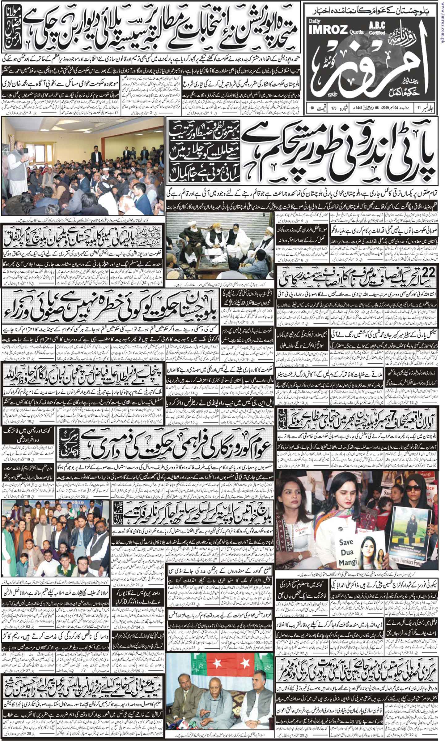 روزنامہ امروز04دسمبر2019ء By majeed On دسمبر 3, 2019 0 149 Share [real3dflipbook id=”115″] 0 149 Share FacebookTwitterGoogle+ReddItWhatsAppPinterestEmail
