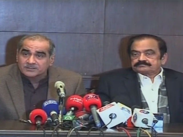 لاہور میں (ن) لیگ کے اجلاس کے بعد خواجہ سعد رفیق، رانا ثناء اللہ، ملک احمد خان اور عطاء اللہ تارڑ نے پارٹی سیکرٹریٹ ماڈل ٹاون میں پریس کو بریفنگ دی۔