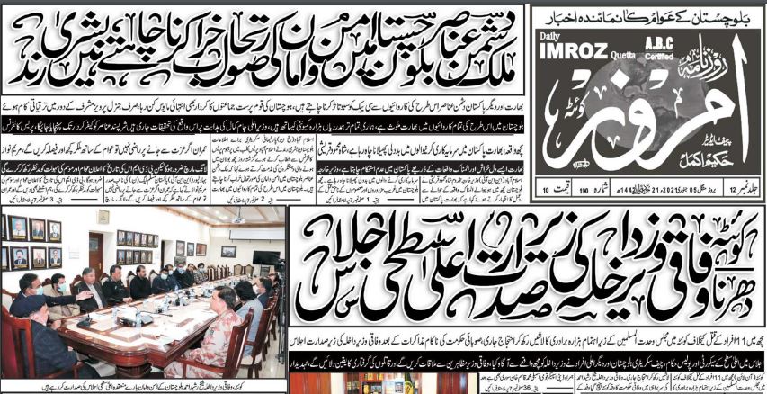 daily imroz quetta 05-01-2021 By majeed On جنوری 5, 2021 0 158 Share daily imroz quetta 05-01-2021 0 158 Share FacebookTwitterGoogle+ReddItWhatsAppPinterestEmail