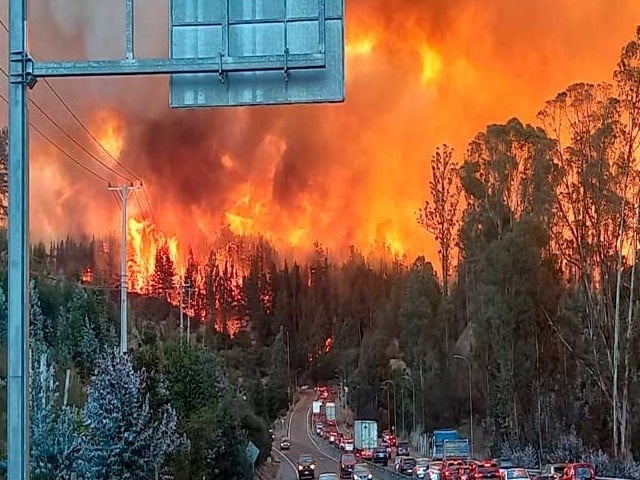 عالمی خبر رساں ادارے کے مطابق چلی کے اروکنیا کے علاقے پیورین کے جنگلات میں لگنے والی خوفناک آگ دیکھتے ہی دیکھتے آس پاس کے کھیتوں اور رہائشی علاقے میں پھیل گئی۔