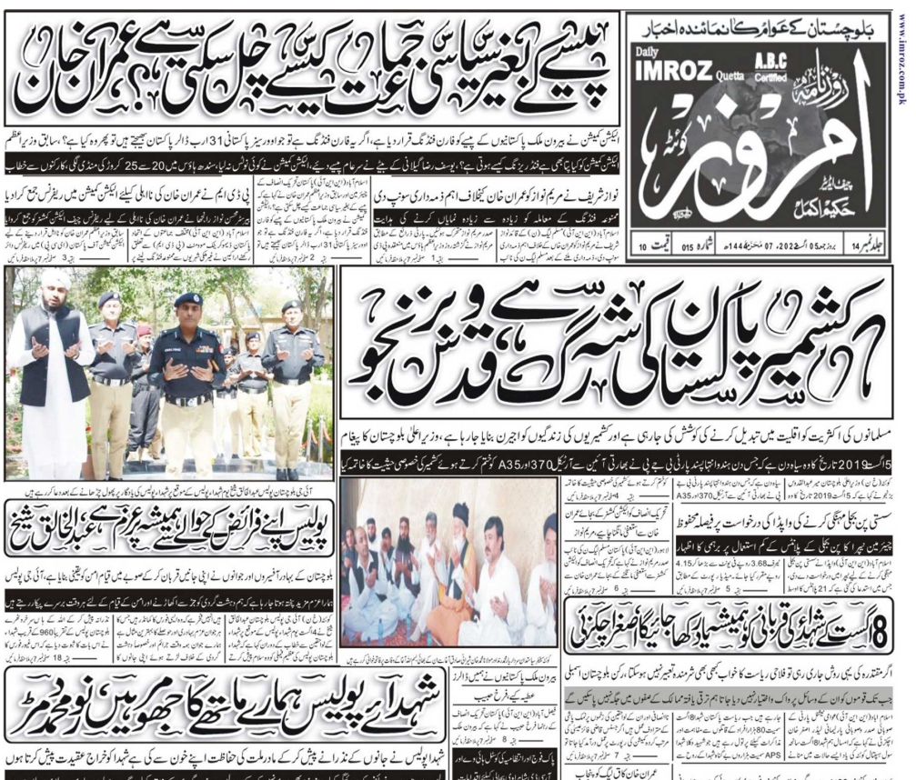 روزنامہ امروز کوئٹہ 05 اگست 2022 By admin On اگست 5, 2022 0 232 Share daily imroz quetta 05-08-2022 0 232 Share FacebookTwitterGoogle+ReddItWhatsAppPinterestEmail
