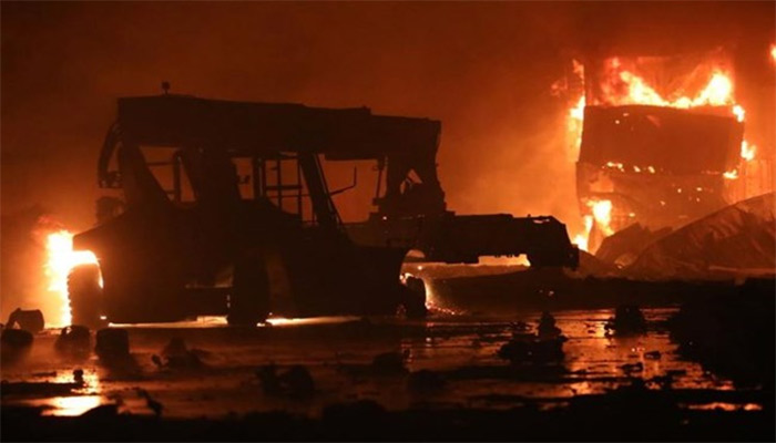 غیر ملکی میڈیا رپورٹس کے مطابق ہفتے کی رات ڈپو میں دھماکے کے بعد آگ بھڑک اٹھی جس نے دیکھتے ہی دیکھتے آس پاس موجود کنٹینرز کو اپنی لپیٹ میں لے لیا، ڈپو میں کیمیائی مواد کے کنٹینرز بھی موجود تھے جو دھماکہ سے پھٹتے رہے، ریسکیو اہلکار آگ پر قابو پانے کی کوششوں میں مصروف ہیں۔