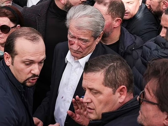 تیرانا: البانیہ کے سابق وزیراعظم سیلی بیریشا کو حکومت مخالف ریلی میں ایک شخص نے مکا دے مارا جس سے ان کے کے چہرے پر نیل پڑ گیا اور ناک سے خون بہنے لگا جس کی ویڈیو وائرل ہوگئی۔
