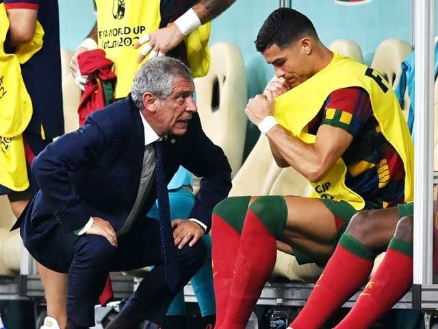 لوسیل اسٹیڈیم میں کھیلے گئے میچ میں پرتگال نے سوئٹزرلینڈ کو یکطرفہ مقابلے کے بعد 1-6 گول سے شکست دی تھی، اہم میچ پرتگال ٹیم کے مینیجر فریننڈو سینٹوز نے کپتان کرسیٹانو رونالڈو کو ڈراپ کردیا تھا، انہوں نے جنوبی کوریا کیخلاف اسٹار فٹبالر کے رویے پر تنقید بھی کی تھی۔