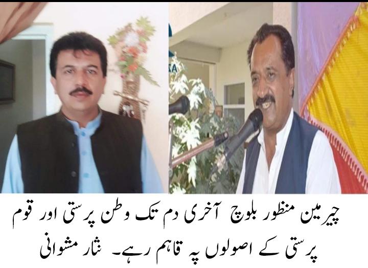 چیرمین منظور بلوچ  آخری دم تک وطن پرستی اور قوم پرستی کے اصولوں پہ قاہم رہے۔ نیشنل پارٹی