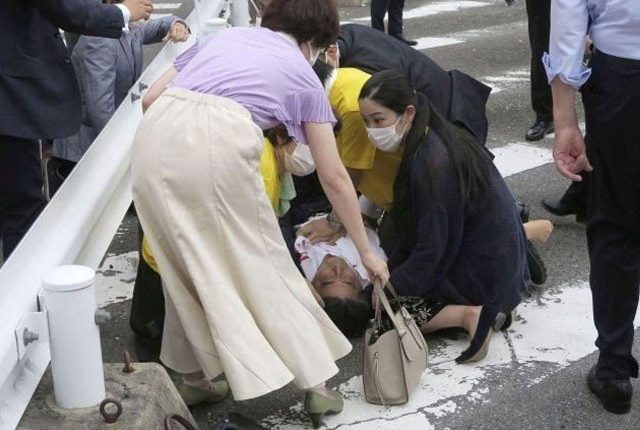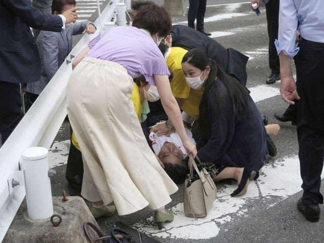 غیر ملکی میڈیا رپورٹس کے مطابق سابق جاپانی وزیراعظم کو مغربی شہر نارا میں انتخابی مہم کی تقریر کے دوران گولی ماری گئی جس کے نتیجے میں وہ شدید زخمی ہوگئے۔ انہیں تشویش ناک حالت میں اسپتال منتقل کیا گیا جہاں وہ زخموں کی تاب نہ لاتے ہوئے دم توڑ گئے۔