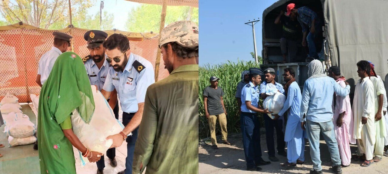 پاک فضائیہ کی جانب سے سیلاب متاثرین کے لیے امدادی آپریشن جاری ہے، جہاں ائیر فورس کی ایمرجنسی رسپانس ٹٰیموں نے ضرورت مند خاندانوں میں کھانا اور ضرورت کی دیگر اشیا تقسیم کیں۔