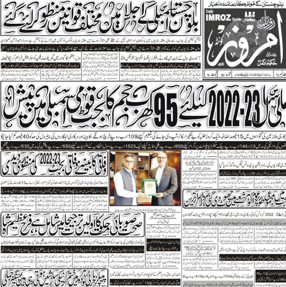 روزنامہ امروز کوئٹہ 11 جون 2022 By admin On جون 11, 2022 0 262 Share Imroz Qta. 11-06-22 0 262 Share FacebookTwitterGoogle+ReddItWhatsAppPinterestEmail