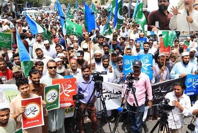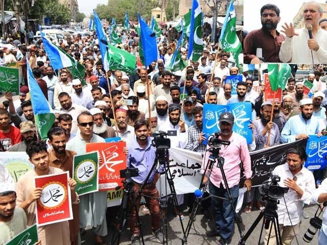 بھارت میں نبی کریم ؐ کی شان میں گستاخی کے خلاف کراچی بھر میں مظاہرے