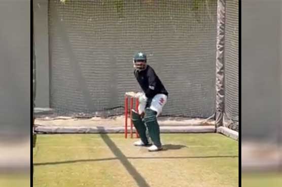 بابر اعظم نے سماجی رابطے کی ویب سائٹ ٹوئٹر پر نیٹ پریکٹس کی ویڈیو جاری کی جس میں وہ بھرپور ردھم میں بیٹنگ کرتے ہوئے نظر آرہے ہیں۔