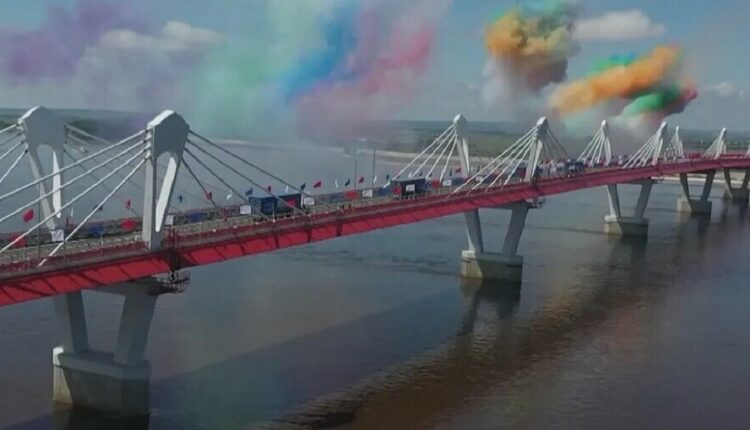 بلاگووشینسک میں ایک تقریب کے دوران ٹرکوں کے گزرنے کے ساتھ ہی پل کو مال بردار ٹریفک کیلئے کھول دیا گیا، اس موقع پر آتش بازی کا بھی اہتمام کیا گیا۔