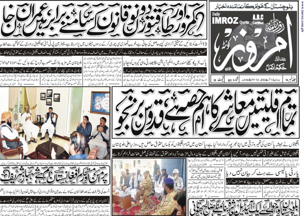 روزنامہ امروز کوئٹہ 12 اگست 2022 By admin On اگست 12, 2022 0 200 Share daily imroz quetta 12-08-2022 0 200 Share FacebookTwitterGoogle+ReddItWhatsAppPinterestEmail