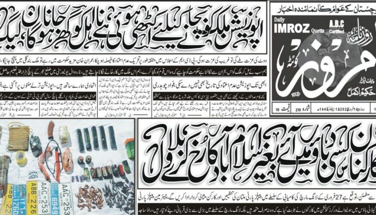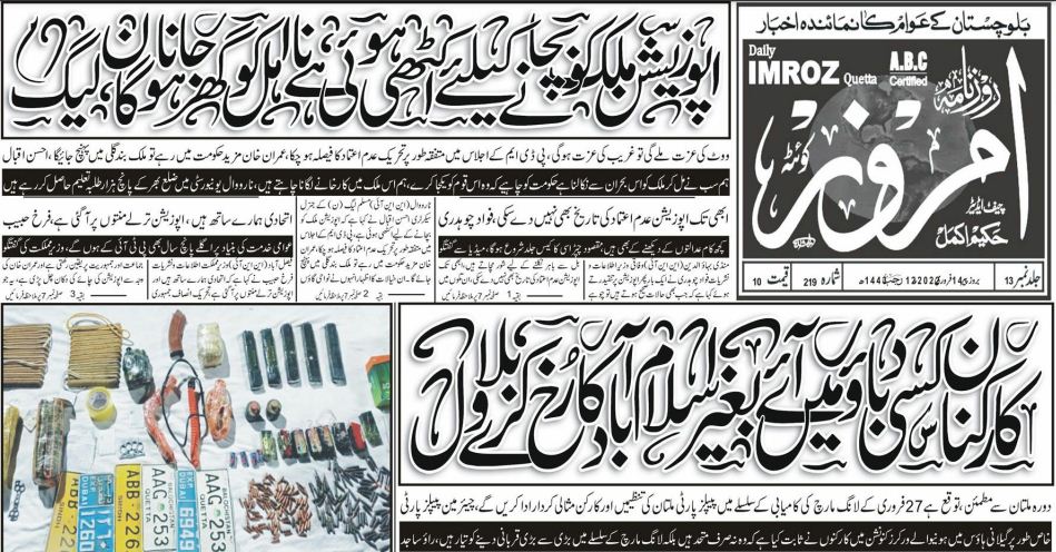 روزنامہ امروز کوئٹہ 14 فروری 2022 By majeed On فروری 13, 2022 0 218 Share daily imroz quetta 14-02-2022 0 218 Share FacebookTwitterGoogle+ReddItWhatsAppPinterestEmail