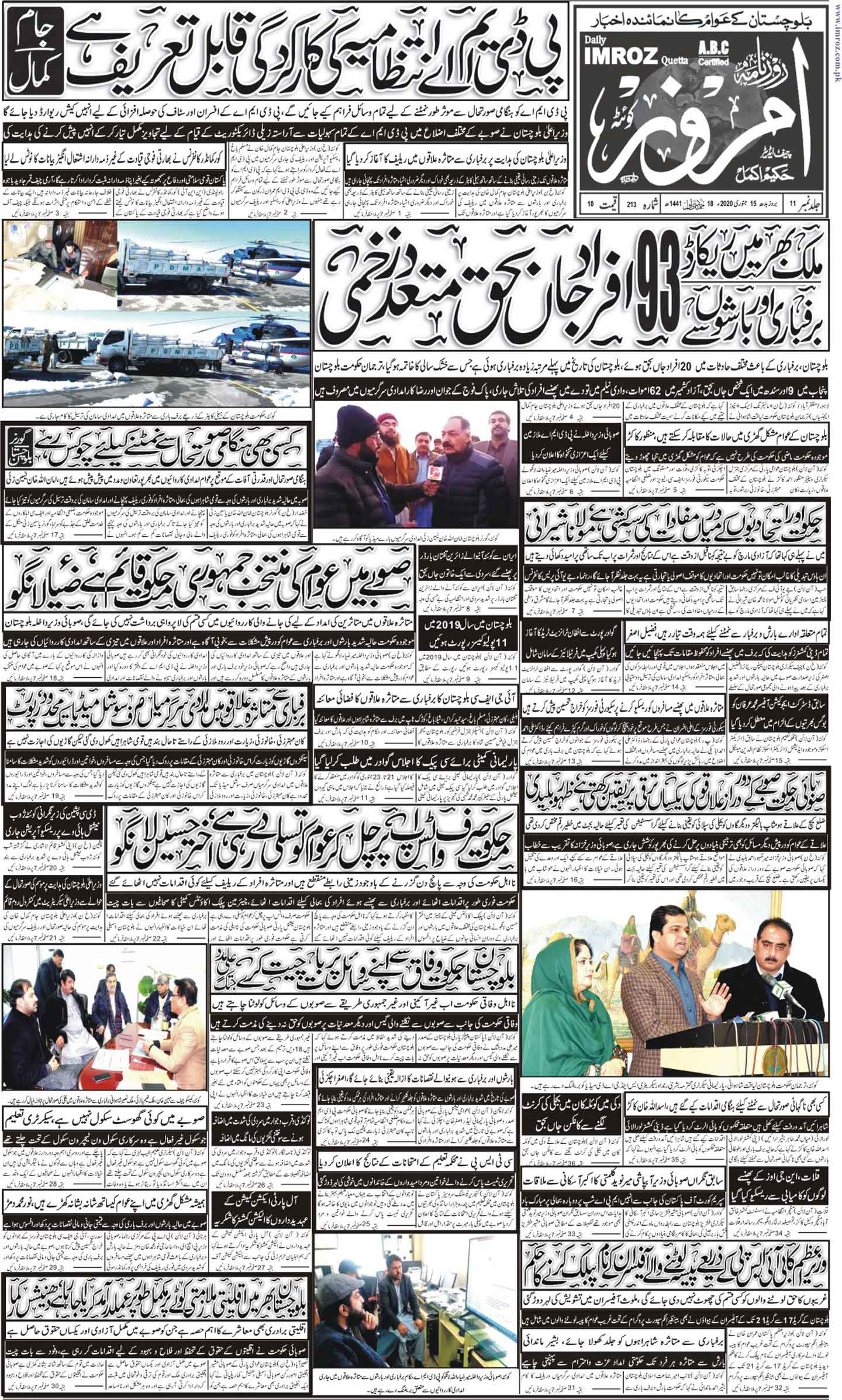 روزنامہ امروز 15جنوری2020 By majeed On جنوری 14, 2020 0 181 Share [real3dflipbook id=”130″] 0 181 Share FacebookTwitterGoogle+ReddItWhatsAppPinterestEmail