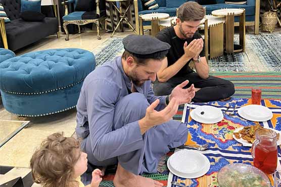 سماجی رابطے کی ویب سائٹ ٹوئٹر پر شاہد آفریدی نے تصویر شیئر کی جس میں دیکھا جاسکتا ہے کہ ان کے ساتھ ان کی بیٹی اور شاہین شاہ آفریدی دستر خوان پر موجود ہیں، افطاری سے پہلے سب ہاتھ اٹھا کر دعا کر رہے ہیں۔