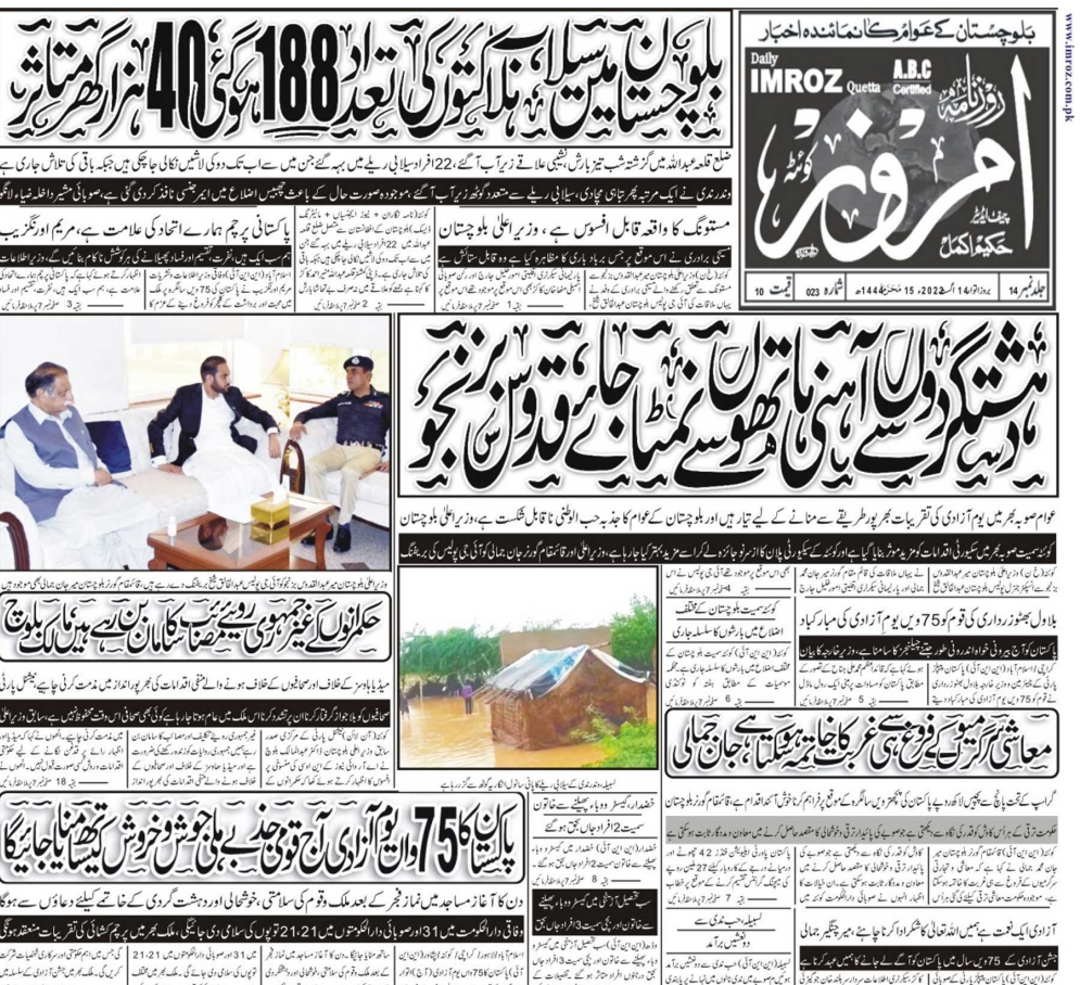 روزنامہ امروز کوئٹہ 14 اگست 2022 By admin On اگست 14, 2022 0 177 Share daily imroz quetta 14-08-2022 0 177 Share FacebookTwitterGoogle+ReddItWhatsAppPinterestEmail