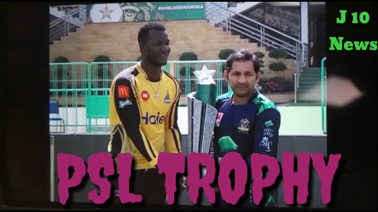 پی ایس ایل 4 کی ٹرافی نیشنل اسٹیڈیم کراچی پہنچ گئی، سرفراز احمد اور ڈیرن سیمی کا ٹرافی تھامے فوٹو سیشن ہوا
