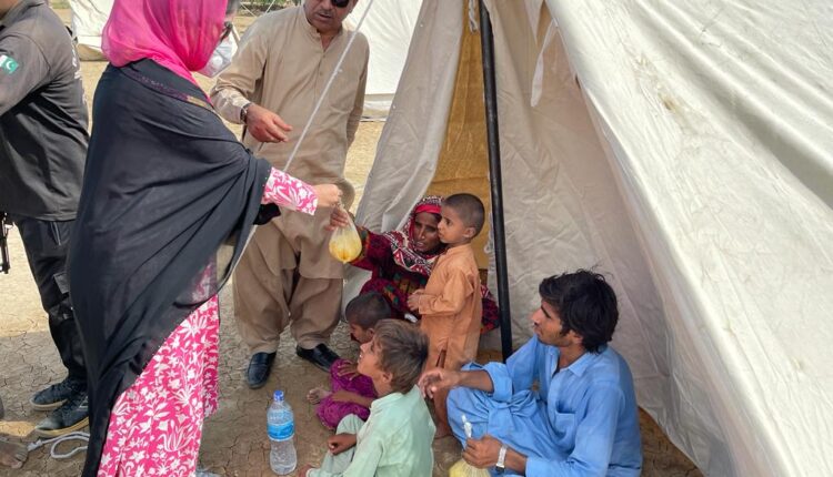حالیہ طوفانی بارشوں کے نتیجے میں بلوچستان میں ریکارڈ تباہی آ چکی ہے ضلع نصیر آباد میں بھی ہزاروں افراد سیلاب سے متاثر ہو کر بے گھر ہو گئے اسسٹنٹ کمشنر ڈیرہ مراد جمالی محترمہ حدیبیہ جمالی ربیع کینال کے علاقے چھتر روڈ پر سیلاب متاثرین کی مدد کے لیے 8 کلو میٹر کا طویل اور دشوار گزار فاصلہ پیدل طے کر کے پہنچ گئیں انہوں نے صوبائی حکومت کی جانب سے سیلاب متاثرین میں خیمے ، پینے کا صاف پانی ، کھانا و دیگر راشن تقسیم کیا تقسیم کے عمل کے بعد وہ خواتین اور بچوں میں گھل مل گئیں کافی دیر تک ان کے پاس بیٹھی رہیں اور ان کا حوصلہ بڑھاتی رہیں انہیں یقین دلایا کہ وہ مشکل کی اس گھڑی میں خود کو تنہا مت سمجھیں صوبائی حکومت کی جانب سے نصیر آباد کی ضلعی انتظامیہ مکمل بحالی تک ان کو ہر ممکن امداد فراہم کرتی رہے گی میڈیکل سپرنٹنڈنٹ ڈیرہ مراد جمالی ڈاکٹر ایاز حسین جمالی اور لوکل گورنمنٹ آفیسر میر نثار احمد بھی امدادی کاموں میں ان کے ہمراہ تھے