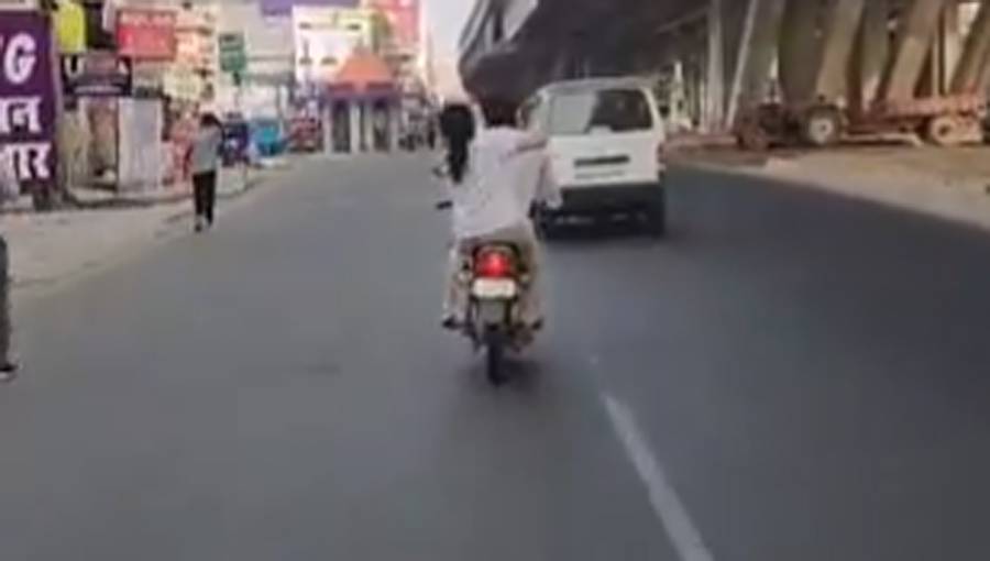 دلچسپ بات یہ ہے کہ شوہر پورے واقعے کے دوران مکمل طور پر غیر متاثر دکھائی دیتا ہے، نہ کوئی ردعمل، نہ کوئی غصہ، نہ ہی بائیک روکنے کی کوشش، بس خاموشی سے بائیک چلاتا رہتا ہے جیسے کچھ ہوا ہی نہ ہو۔