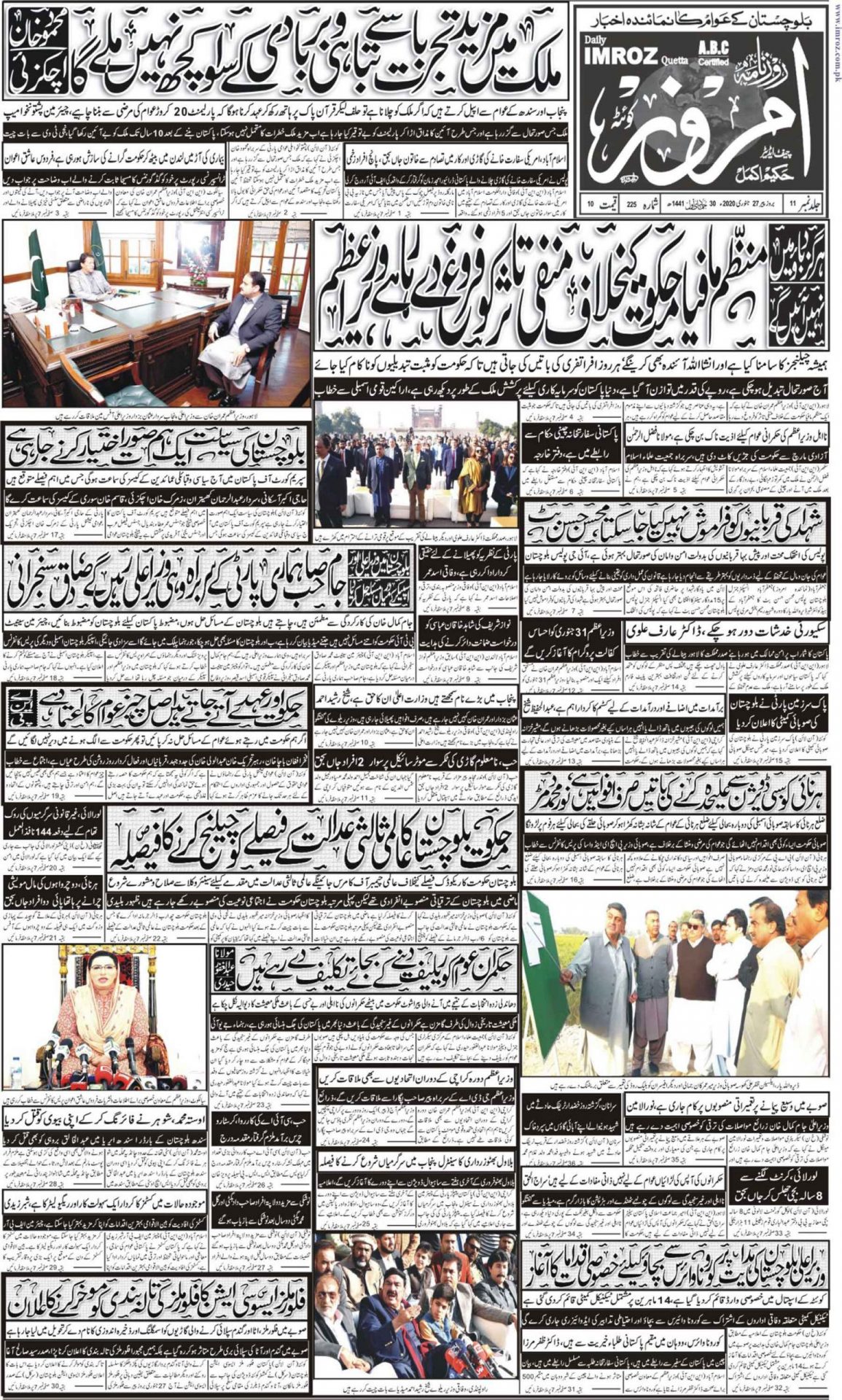 روزنامہ امروز27جنوری2020 By majeed On جنوری 26, 2020 0 192 Share [real3dflipbook id=”147″] 0 192 Share FacebookTwitterGoogle+ReddItWhatsAppPinterestEmail