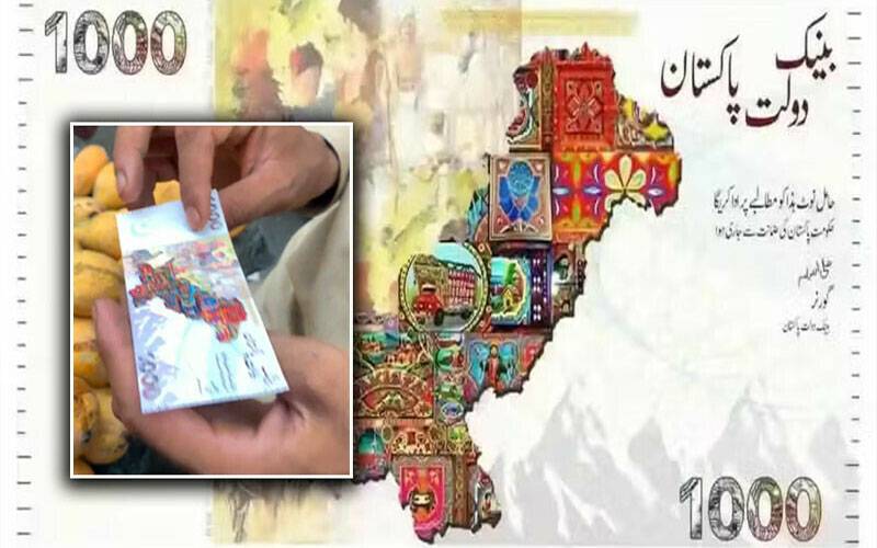 کراچی سوشل میڈیا پر گردش کرتی ویڈیوز اور تصاویر میں ایک نیا ایک ہزار روپے کا کرنسی نوٹ دکھایا جا رہا ہے، جس کے بارے میں دعویٰ کیا جا رہا ہے کہ یہ سٹیٹ بینک آف پاکستان کی جانب سے جاری کیا گیا ہے۔ تاہم سٹیٹ بینک نے اس دعوے کو مکمل طور پر بے بنیاد قرار دے دیا ہے۔