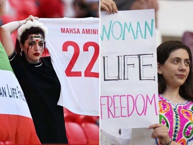 فیفا ورلڈکپ؛ مہسا امینی والی شرٹ پہننے پر ایرانی خواتین کو اسٹیڈیم سے نکال دیا گیا