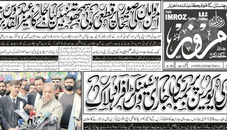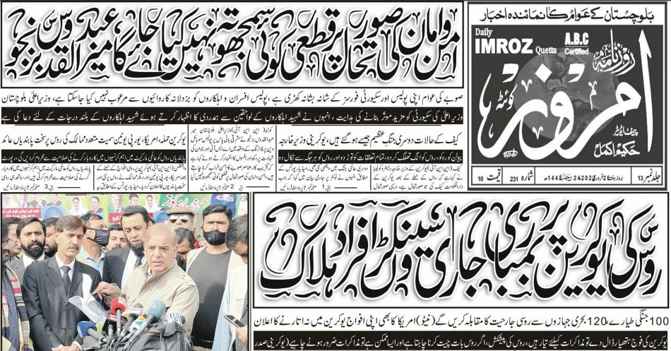 روزنامہ امروز کوئٹہ 26 فروری 2022 By majeed On فروری 27, 2022 0 510 Share daily imroz quetta 26-02-2022 0 510 Share FacebookTwitterGoogle+ReddItWhatsAppPinterestEmail