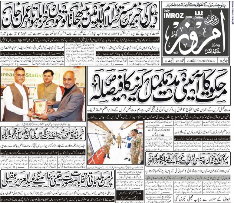 روزنامہ امروز کوئٹہ 28 مئی 2022 By admin On مئی 28, 2022 0 182 Share Imroz Qta. 28-05-22 0 182 Share FacebookTwitterGoogle+ReddItWhatsAppPinterestEmail